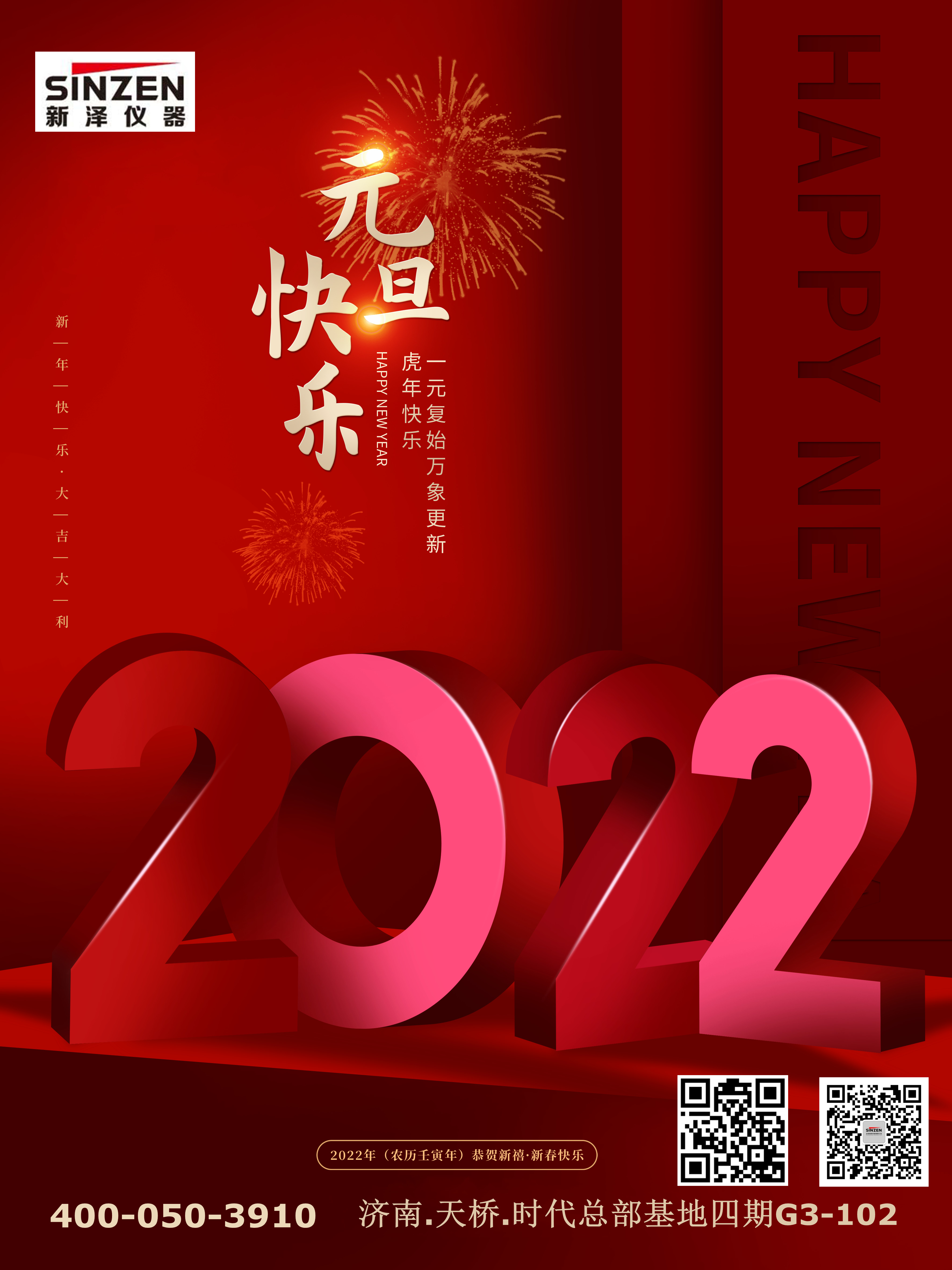 信心滿懷辭舊歲,銳意進取譜新篇。山東新澤儀器有限公司在2022年,會站在新的起點上,把目光放遠,把腳步踏實,凝心聚力,為各位朋友們提供更貼心,更專業的技術服務!