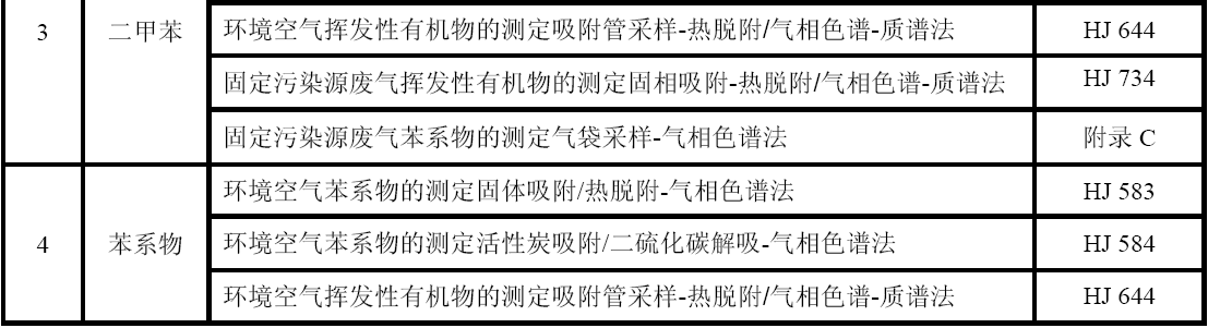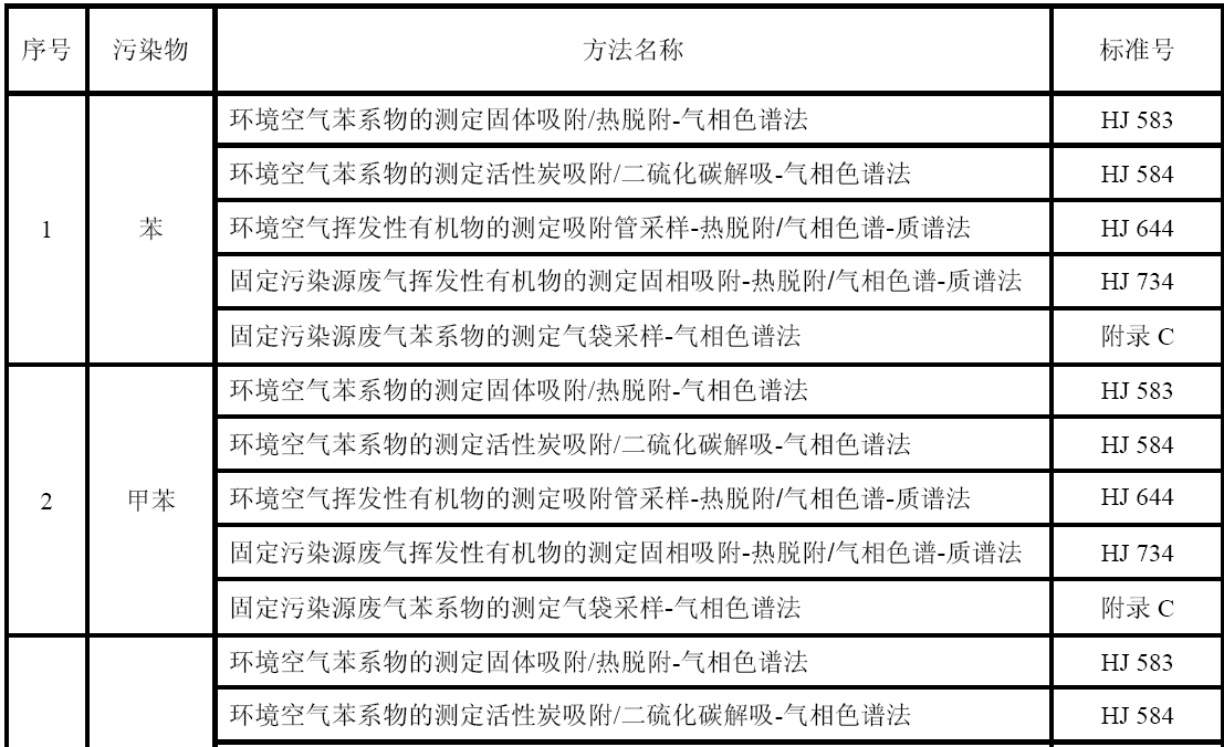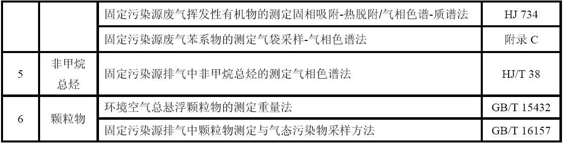 GB 16297 大氣污染物綜合排放標(biāo)準(zhǔn) GB 24409 汽車涂料中有害物質(zhì)限量 GB/T 15089 機(jī)動車輛及掛車分類 GB/T15432 環(huán)境空氣總懸浮顆粒物的測定重量法 GB/T 16157 固定污染源排氣中顆粒物測定與氣態(tài)污染物采樣方法 HJ 583 環(huán)境空氣苯系物的測定固體吸附/熱脫附-氣相色譜法 HJ 584 環(huán)境空氣苯系物的測定活性炭吸附/二硫化碳解吸-氣相色譜法 HJ 644 環(huán)境空氣揮發(fā)性有機(jī)物的測定吸附管采樣-熱脫附/氣相色譜-質(zhì)譜法 HJ 732 固定污染源廢氣揮發(fā)性有機(jī)物的采樣氣袋法 HJ 734 固定污染源廢氣揮發(fā)性有機(jī)物的測定固相吸附-熱脫附/氣相色譜-質(zhì)譜法 HJ/T 38 固定污染源排氣中非甲烷總烴的測定氣相色譜法 HJ/T 55 大氣污染物無組織排放監(jiān)測技術(shù)導(dǎo)則 HJ/T 75 固定污染源煙氣排放連續(xù)監(jiān)測技術(shù)規(guī)范(試行) HJ/T 194 環(huán)境空氣質(zhì)量手工監(jiān)測技術(shù)規(guī)范 HJ/T 293 清潔生產(chǎn)標(biāo)準(zhǔn)汽車制造業(yè)(涂裝) HJ/T 397 固定源廢氣監(jiān)測技術(shù)規(guī)范 《建設(shè)項(xiàng)目環(huán)境保護(hù)設(shè)施竣工驗(yàn)收監(jiān)測技術(shù)要求(試行)》(環(huán)發(fā)(2000)38號)
