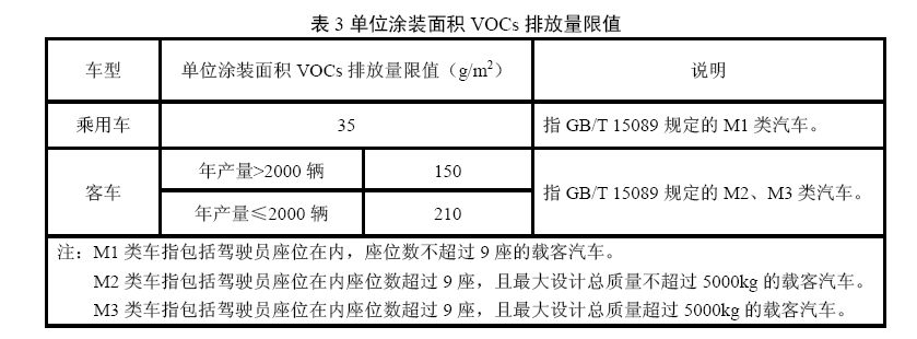 4.2.3單位涂裝面積VOCs排放量 單位涂裝面積VOCs排放量限值應(yīng)符合表3規(guī)定。