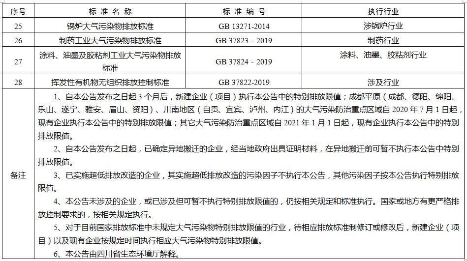 關于執行大氣污染物特別排放限值的公告