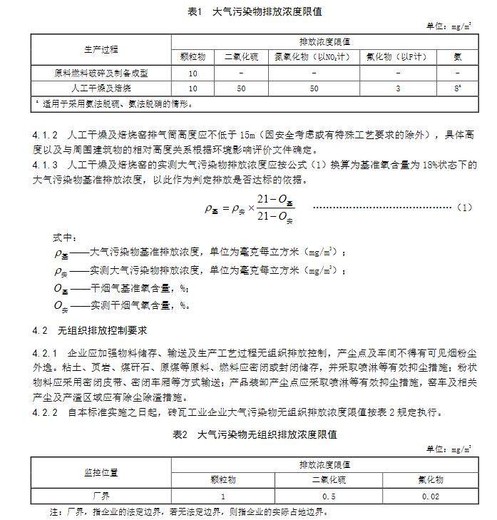 本文件適用于現有磚瓦工業企業的大氣污染物排放管理,以及磚瓦工業建設項目的環境影響評價、環境保護設施設計、竣工環境保護驗收、排污許可證核發及其投產后的大氣污染物排放管理。