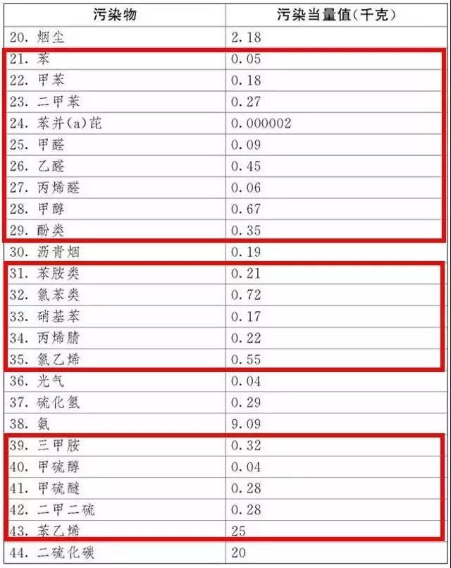 其中涉及VOCs的應稅污染物的污染當量值節選如下: