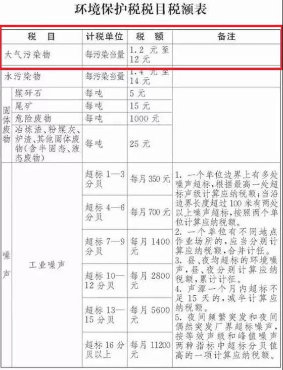 環境保護稅的稅目、稅額,依照本法所附《環境保護稅目稅額表》執行。