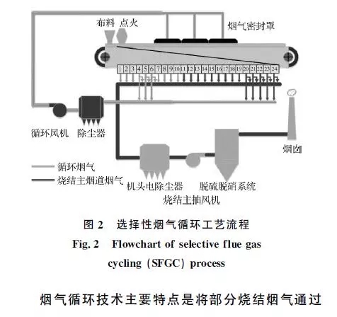 燒結煙氣循環技術是通過選擇性收集不同的風箱(或主抽后煙道)的部分載熱煙氣,混合后返回至燒結臺車,從而回收部分燒結余熱,降低固體燃耗。同時,返回的煙氣還含有NOx、CO和二噁英等污染物,可部分被分解或轉化,從而實現污染物減排。此外,煙氣循環可以實現煙氣減量化,降低末端污染控制設施處理負荷及投資和運行成本。