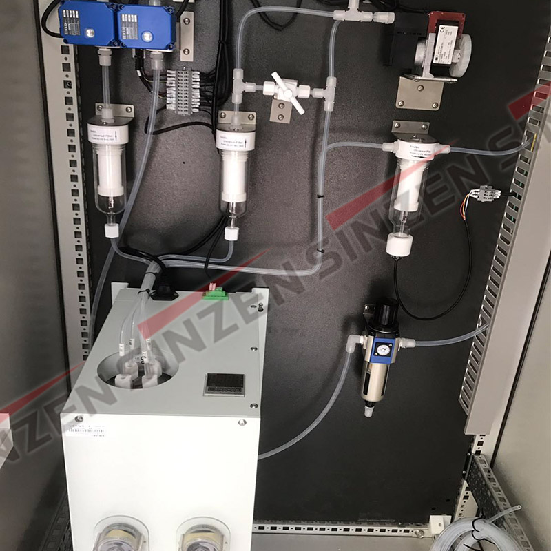 緊接著到了下面,把量程氣通到采樣球閥的上面那根管,最終顯示的數據也是差了好多。隨后跳過冷凝器,直接在第三過濾器的進口通氣,過了幾分鐘之后,分析儀數據和標氣瓶上的值相對穩定。回過頭來再去找冷凝器的問題,先是把量程氣通到二進口。過了幾分鐘發現數據也能夠相匹配,然后我再往前找,在冷凝器的一進口通氣。過了幾分鐘之后數據差了許多,隨后判斷出問題不是冷腔的問題,那就是蠕動泵的問題,正好我隨身帶了一個蠕動泵。將他換好之后,再次往讓球閥的位置進行標氣。幾分鐘碳看分析儀上的數據,完全可以和標氣瓶上的值相匹配,最后判斷為蠕動泵進行排水的過程中,沒有把水排出去,導致管路中堵塞。大部分的氣沒有到分析儀。蠕動泵換好之后,又把量程氣在各個地方通了一遍,均沒有問題。都能夠相   匹配。準,讓現場負責人聯系銷售購買80%的量程氣。