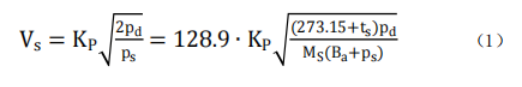 SVPT-100 型溫壓流監(jiān)測(cè)儀是基于傳統(tǒng)皮托管的差壓測(cè)量原理設(shè)計(jì)的。測(cè)量時(shí),將“S”型皮托管插入管道中,并使皮托管的全壓和靜壓測(cè)孔中心軸線固定在過流斷面中心且與流線方向一致,全壓測(cè)孔正對(duì)氣流方向,同時(shí)靜壓測(cè)孔背對(duì)氣流方向。煙氣的流速與其動(dòng)壓平方根成正比,根據(jù)測(cè)得某測(cè)點(diǎn)處的動(dòng)壓、靜壓以及溫度等參數(shù),測(cè)點(diǎn)氣流速度 Vs 按式(1)計(jì)算